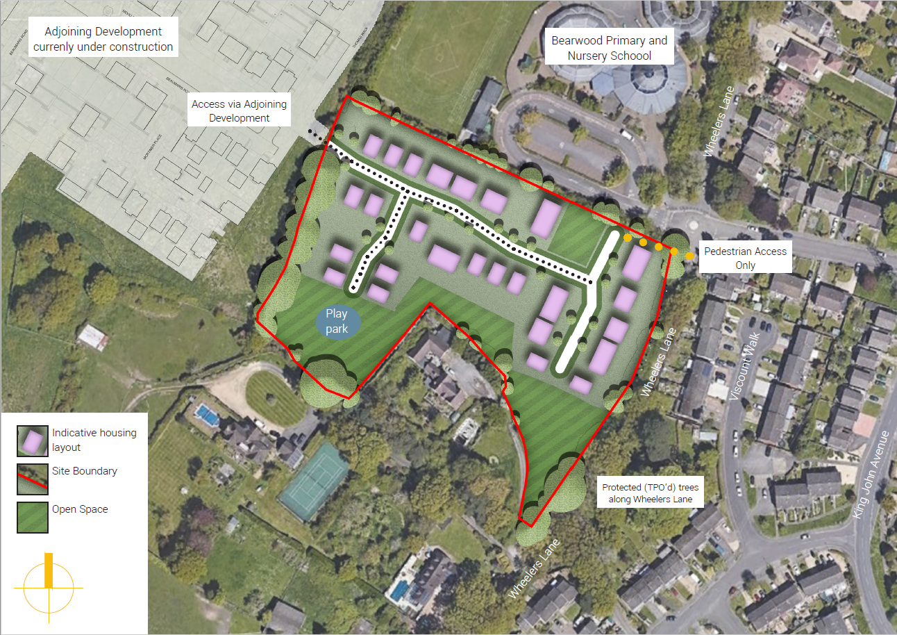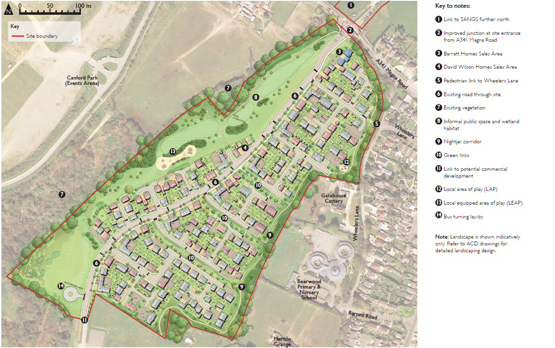 Barratt David Wilson Homes have in Spring 2021 submitted a planning application on land to the south of Bearwood Primary and Nursery school, between Wheelers Lane and the site of Canford Paddock Phase 1. The proposed development would form an extension to the current phase, with vehicular access through the consented development from Magna Road. The proposal responds to BCP Council's search for land outside of the Greenbelt to meet the local housing demand.